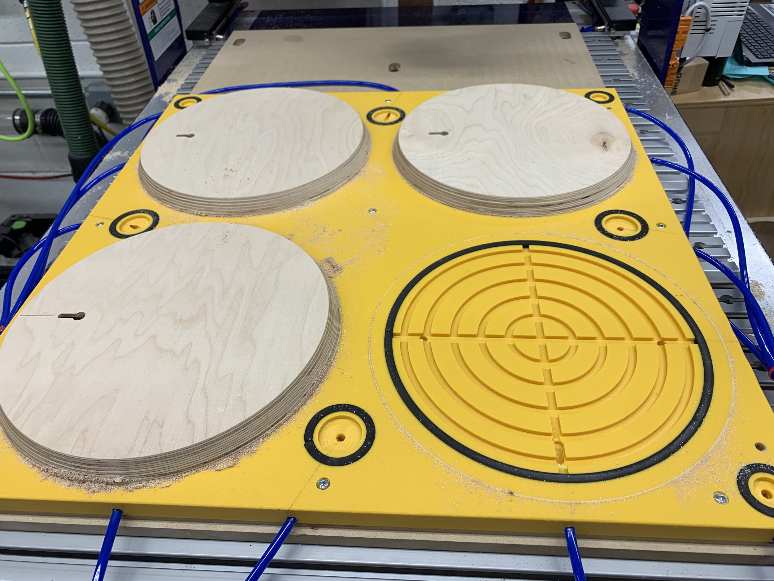 Twist #9 pieces being cut out on the ShopBot and Andrew (assistant) sandingFebruary 2021